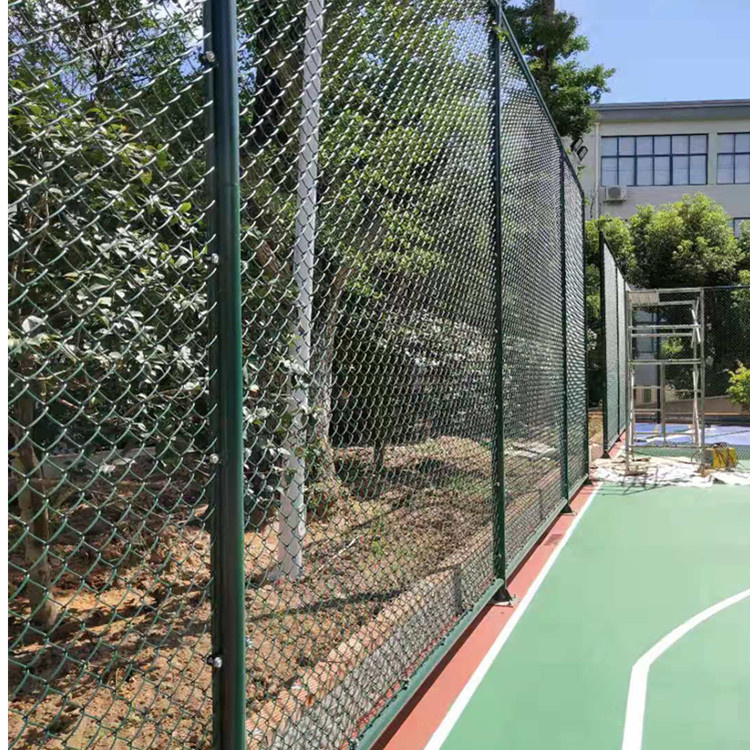 組裝式運(yùn)動(dòng)場圍網(wǎng)材質(zhì):pvc/pe包塑勾花網(wǎng),內(nèi)絲采用優(yōu)質(zhì)低碳鋼絲鍍鋅處理,外表進(jìn)行涂塑防腐處理。 生產(chǎn)工藝:編織焊接 表面處理:圍網(wǎng)采用PE/PVC包塑絲,立柱、邊框采用噴塑、浸塑處理 常用規(guī)格: 1.包塑絲經(jīng):3.8mm; 2.網(wǎng)孔:50mm×50mm;60mm×60mm; 3.尺寸:3000mm(寬度)*4000mm(高度)3000mm(寬度)*6000mm(高度) 4.立柱:直徑60mm圓管,壁厚2.5mm; 5.橫柱:直徑50mm圓管,壁厚2mm; 顏色:一般多采用墨綠色和草綠色,以墨綠色居多。 優(yōu)點(diǎn):美觀耐用、免維護(hù)、安裝簡單、有較好的防護(hù)、裝飾、美化效果。