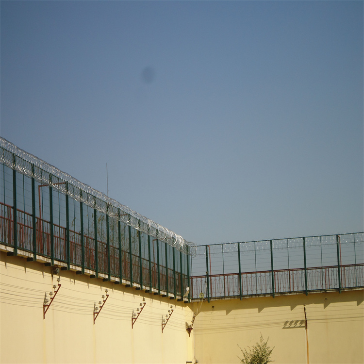 監(jiān)獄鋼網(wǎng)墻由銳利尖角鍍鋅鋼板或不銹鋼薄板做刀片,高張力鋼絲做芯線組合而成的。鋒利的刀型刺由雙線扣裝后成蛇腹?fàn)?,既美觀又讓人不寒而粟。起到了很好的阻嚇作用。