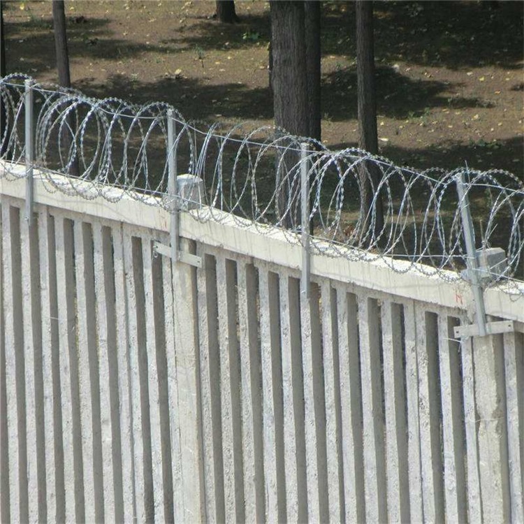 刀片刺絲工藝:采用鋼板(刀板)沖壓成型包附于熱鍍鋅鋼絲(芯線)之上,由銳利尖角鍍鋅鋼板或不銹鋼薄板做刀片,高張力鋼絲做芯線組合而成的。