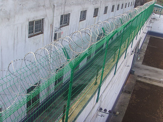 3.監(jiān)獄隔離柵顏色:聚酯涂層綠色RAL6005,紅色,黃色,WHTALAL9010等。