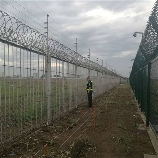 機(jī)場(chǎng)隔離柵產(chǎn)品1、網(wǎng)絲材質(zhì):高純合金低碳鋼,直徑為Φ5mm(需浸塑處理)。?