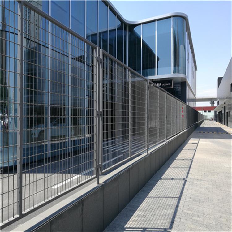 工廠圍墻框架隔離柵是一種組裝十分靈活的產(chǎn)品,采用優(yōu)質(zhì)盤(pán)條作為原材料,經(jīng)由鍍鋅、涂前底漆和高附著力粉末噴涂三層保護(hù)的焊接式網(wǎng)片,在這種護(hù)欄網(wǎng)的表面處理為鍍鋅和噴涂,也可以任選一種,頂端蓋有塑料蓋或防雨帽。根據(jù)環(huán)境和安裝方式不同,可選用預(yù)埋50cm、加底座等方式。將鐵絲網(wǎng)圍墻的網(wǎng)片和立柱靠螺絲和各類(lèi)特殊的塑料或鐵制卡子連接。所有的螺絲均為自動(dòng)防盜的。所用配件也可以按照客戶的具體要求來(lái)設(shè)計(jì)??蚣芨綦x柵廣泛用于中國(guó)的公路、鐵路、高速公路等;既可以制作成永久性網(wǎng)墻,又可以作為臨時(shí)隔離網(wǎng)使用,只需采用不同的立柱固定方式便可實(shí)現(xiàn)。