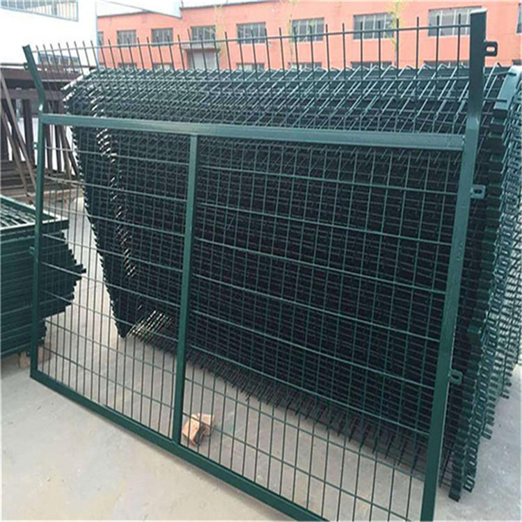 鐵路封閉網(wǎng)網(wǎng)片及柵欄門的網(wǎng)片成形后應整體鍍鋅并進行熱浸塑(或噴塑)處理,鍍鋅量270g/m2,浸塑厚度0.8mm~1.2mm,噴塑顏色選用墨綠色。
