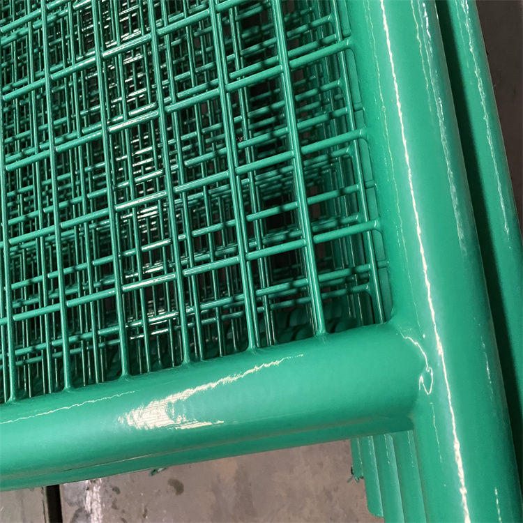 防腐處理:金屬網(wǎng)片及柵欄門的網(wǎng)片成形后應(yīng)整體鍍鋅并進(jìn)行熱浸塑(或噴塑)處理,鍍鋅量270g/m2,浸塑厚度0.8mm~1.2mm,顏色選用墨綠色。涂層應(yīng)均勻,顏色一致,表面光滑,無流柱,滴瘤、粉泡、漏鐵等缺陷。網(wǎng)片制造精度要求:長度誤差≤2.5mm,高度誤差≤3.0mm。網(wǎng)片平整度要求:凸起或凹進(jìn)值≤5.0mm。冷拔鋼絲鍍鋅前直徑誤差≤0.06mm。焊接網(wǎng)孔誤差≤3.0mm。焊接網(wǎng)片連接板時,連接板焊接位置應(yīng)嚴(yán)格控制在設(shè)計位置,其位置誤差≤1.5mm。矩管邊框與連接板、網(wǎng)片鋼絲與鋼板、網(wǎng)片鋼絲與矩管邊框的焊接宜采用電阻焊、如用釬焊,應(yīng)選用合適的焊條,使其變形*小。焊接后應(yīng)清理焊渣。對焊接產(chǎn)生的變形,應(yīng)進(jìn)行平整處理。為保證網(wǎng)片自身有足夠的強(qiáng)度,網(wǎng)片焊接點的強(qiáng)度應(yīng)大于1KN,焊接點脫落數(shù)小于4%。