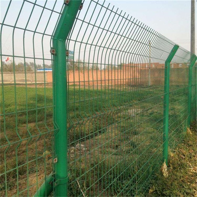 1、網(wǎng)片:采用熱鍍鋅+pvc包塑鐵絲角鋼框架焊接網(wǎng)片,尺寸為1.8m*1.98m(高*寬)。網(wǎng)孔尺寸為75mm*150mm,絲徑為5.0mm,熱鍍鋅+包塑后為6mm;邊框采用角鋼邊框,規(guī)格為63*40*5,網(wǎng)片底部高出地面0.1m。