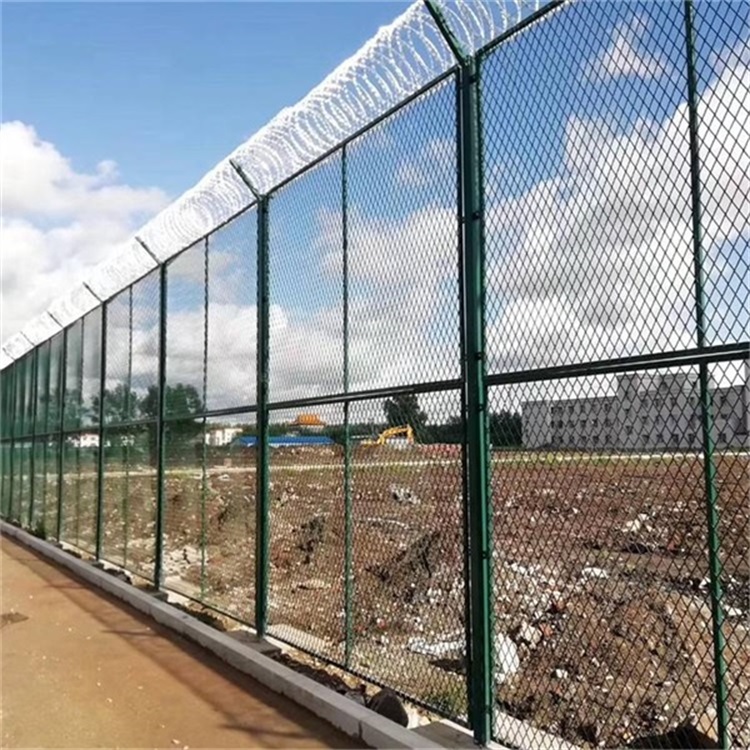 監(jiān)獄圍墻加裝隔離網(wǎng)是V型支架立柱,加強(qiáng)型焊接片網(wǎng),安全防盜連接件和熱鍍鋅刀片刺籠組成,強(qiáng)度和安全防御性級(jí)別很高。