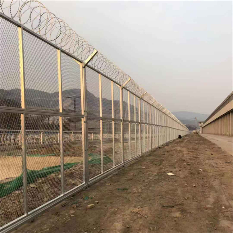 機(jī)場(chǎng)飛行區(qū)圍界可采用角鋼隔離圍界又被稱為刀片刺籠隔離網(wǎng),立柱頂端呈Y字型,上面架設(shè)刀片刺繩,提高了隔離柵的防御等級(jí)。該產(chǎn)品的網(wǎng)面與三角折彎隔離柵的網(wǎng)面是相同的,經(jīng)過折彎處理增加強(qiáng)度四周焊接50x50角鋼,并且減少單調(diào)乏味。為了避免攀爬發(fā)生,頂端加設(shè)刺絲滾籠,這樣會(huì)增加嚇阻作用,起到防范,并且在外型上形成獨(dú)有的特點(diǎn),令人過目難忘。