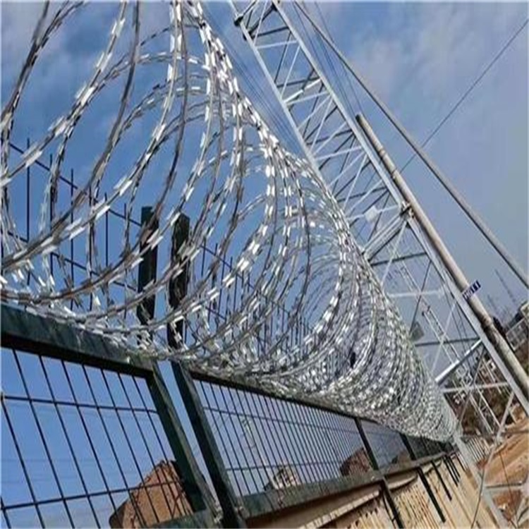 針對(duì)刺絲滾籠和雙股刺繩對(duì)于上鋅量是明顯的要求了,此外包括一些安裝長(zhǎng)度和直徑等等方面要求也是比較多的。張開后形成蛇腹網(wǎng)狀,閉合后刀片刺繩圈徑為50cm,張開后每交叉圈安裝間距20cm,直徑不小于45cm,刀刺寬度22mm,兩刃垂直間距15cm,刀刺縱向間距34mm,芯絲直徑為2.5mm,刀片采用厚度0.5mm的Q195鋼板沖切制作,芯絲由HPB300直徑6.5mm高線鋼絲冷拔加工。這樣名列出嚴(yán)格的技術(shù)要求也是為了保障安全和使用壽命。這里面我們要指出的一點(diǎn)就是小型的支架是為加密而設(shè)計(jì)的,而大點(diǎn)的刺繩支架是在階梯交接的地方進(jìn)行安裝和固定的。安裝工序是肯定是先固定支架了,一般都有專門的u型螺栓抱咂在水泥制的圍欄上面只需要固定結(jié)實(shí)即可,重點(diǎn)是先放置刺絲滾籠并不打開,然后將雙股刺繩穿過去并固定結(jié)實(shí)后再進(jìn)行刺絲滾籠的架設(shè)。這個(gè)步驟可不要操作反了不然是無(wú)法安裝的。