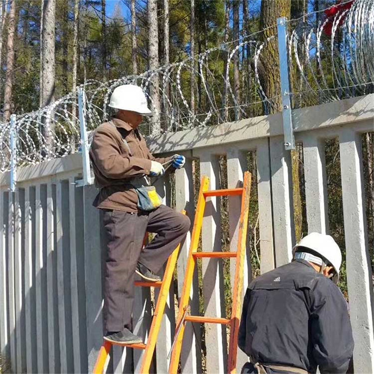 高鐵刺絲滾籠安裝前提是,鐵路線路的水泥防護(hù)柵欄安裝完畢時(shí)即可開(kāi)始安裝高鐵刺絲滾籠,一般在水泥防護(hù)柵欄的基礎(chǔ)上加高0.5米的高鐵刺絲滾籠以增強(qiáng)防護(hù)能力。一般刺絲滾籠先安裝支架和加密支架后開(kāi)始縱向拉筋和刺絲滾籠的安裝。安裝時(shí)需帶防割手套以防止手被割傷。