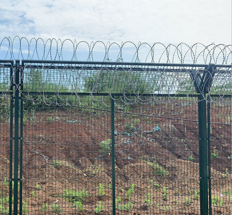 機(jī)場(chǎng)隔離柵首先進(jìn)取相對(duì)應(yīng)的原材料,一般機(jī)場(chǎng)護(hù)欄的立柱為2.5米高,立柱方管采用鍍鋅方管60mm,4mm厚,Y型頭為500mm的,垂直高度為3.46米,立柱為預(yù)埋柱,網(wǎng)框?yàn)?0x50x5mm鍍鋅角鐵,絲徑為絲中到絲中50mmx100mm塑前的粗度5mm的絲,V字網(wǎng)與網(wǎng)框網(wǎng)片絲徑絲粗相同,刺繩為60mm直徑圓的熱鍍鋅刀片刺繩,整體浸塑為墨綠色,浸塑采用塑粉浸塑完成,表面光滑,上塑量高,一般整套2米x3的機(jī)場(chǎng)護(hù)欄網(wǎng)上塑量高達(dá)百分之十左右。刀片刺繩不浸塑。機(jī)場(chǎng)護(hù)欄網(wǎng)不光是立柱為預(yù)埋柱,還每9米設(shè)置了一道斜撐,這樣有利機(jī)場(chǎng)護(hù)欄網(wǎng)的穩(wěn)定性能,是結(jié)實(shí)實(shí)用的優(yōu)質(zhì)護(hù)欄網(wǎng)。
