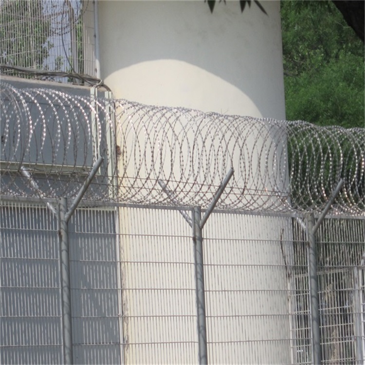 三所一隊建設(shè) 是指看守所 拘留所 戒毒所 武警中隊的內(nèi)外墻專用隔離網(wǎng)。 無論是看守所隔離網(wǎng)還是戒毒所設(shè)計的隔離網(wǎng),一般分為內(nèi)監(jiān)墻隔離網(wǎng),外監(jiān)墻隔離網(wǎng),巡邏道專用隔離網(wǎng),巡邏道隔離網(wǎng)是高墻上面安裝防止犯人逃跑設(shè)計必須要高架上面安裝刺繩,刺繩可以防止攀爬不容易翻越從而更好的起到更好的防護(hù)作用。