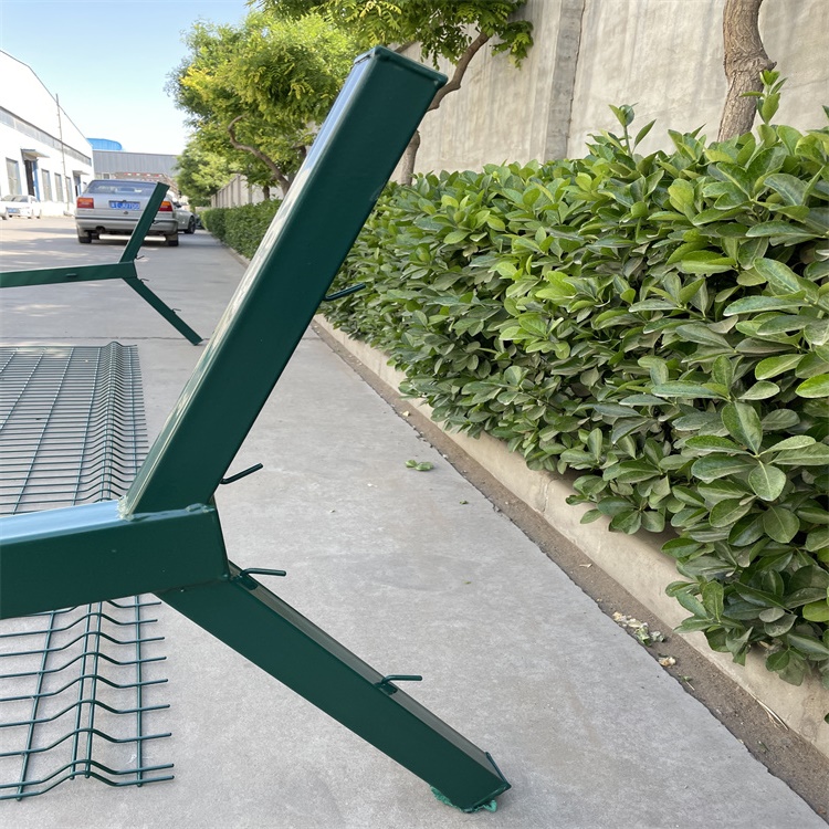 立柱:60*80mm,80*80mm,80*100mm,100*100mm等矩形鋼,頂部焊有V型之架,用以架設(shè)蛇腹形刀刺網(wǎng).