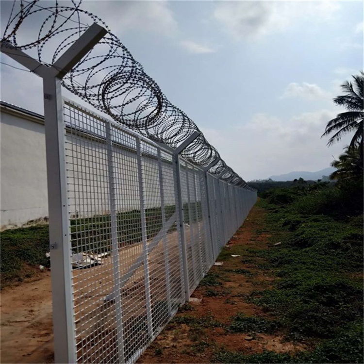 監(jiān)獄鐵絲網(wǎng)的用途︰產品的應用范圍是比較小的,因為產品的主要應場所都是比較遠離人口密集地的,因為其外觀真的是挺嚇人的。經(jīng)常坐飛機的人應該都注意過,機場外圍隔離墻都是采用的Y型柱隔離網(wǎng),而Y型柱的上面就會采用的是監(jiān)獄鐵絲網(wǎng)。在監(jiān)獄看守所的圍墻上面也會采用這種隔離效果超好的產品。還有就是邊境線上會大量采購這種產品來做防護隔離用。