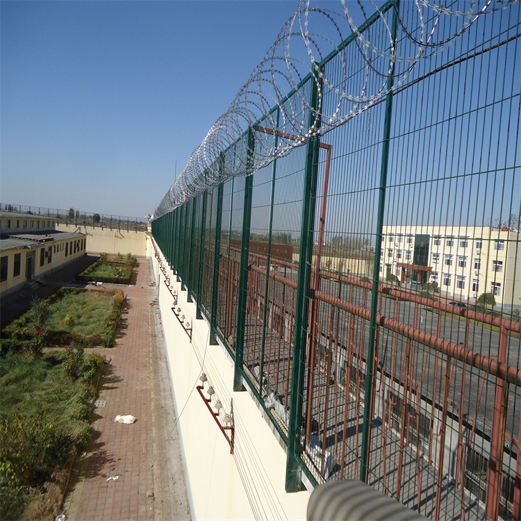 2、監(jiān)獄看守所巡邏道防護網(wǎng)一般使用熱鍍鋅鋼絲焊接或鋼絲焊接后鍍鋅再做涂塑處理,達到雙重防腐。