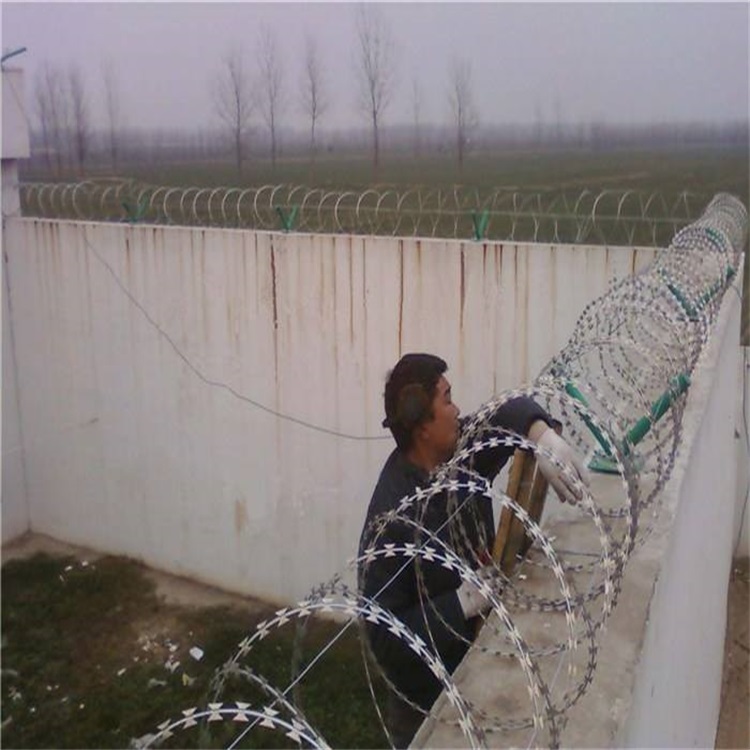 鋼網(wǎng)墻刀刺網(wǎng)由于其高墻的防攀爬效果正在更多的被人們應(yīng)用到監(jiān)獄系統(tǒng),在安裝過程中一定要注意刀刺的鋒利性,穿戴防護(hù)措施以避免被刀刺劃傷。