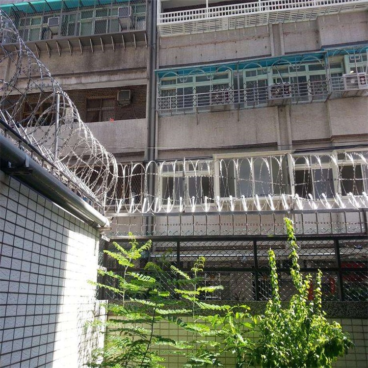 刀刺網(wǎng)不僅因?yàn)樗己玫姆雷o(hù)作用得到人們的青睞,而且它還被廣泛地應(yīng)用在學(xué)校護(hù)欄頂部中。這是因?yàn)?,一方面,刀刺網(wǎng)的使用可以起到警示的作用,有效地杜絕了學(xué)生跳出去上網(wǎng)的情況;另一方面,刀刺網(wǎng)和學(xué)校整齊劃一,外觀美觀,在保護(hù)學(xué)校安全的同時(shí),還起到了美化的作用。刀刺網(wǎng)方便安裝,根據(jù)安裝方法的不同可以分為不同的種類:螺旋式、直線式、平板式等等。