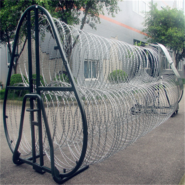 刀片刺網(wǎng)是一種發(fā)展起來的防護、隔離能力較強的新型防護網(wǎng)產(chǎn)品。鋒利的刀型刺由雙線扣裝后成蛇腹狀,既美觀又讓人不寒而栗。起到了很好的阻嚇作用。同時該產(chǎn)品具有美觀、防阻效果好、施工便利等優(yōu)點。