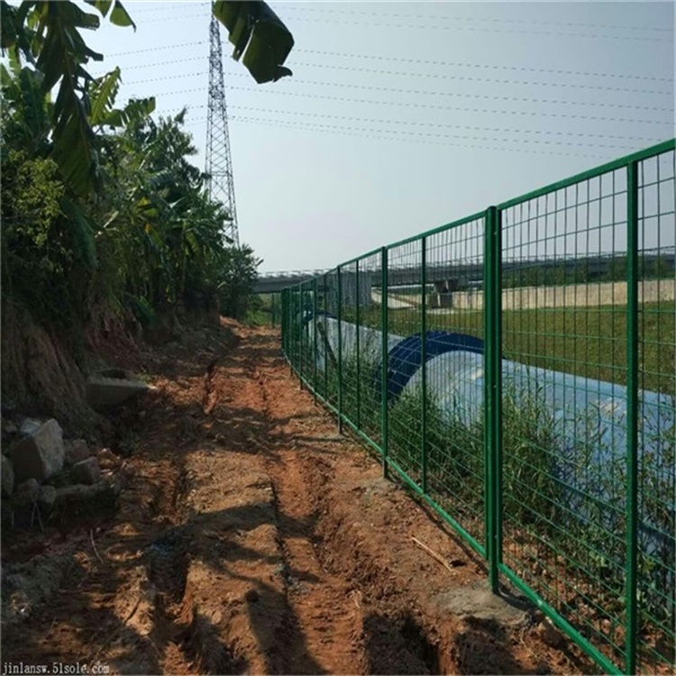 在河道,水源地,水庫等地為了防止有人失足落水而建設(shè)的圍欄網(wǎng)具有美觀和防護(hù)的用途。常用的河道水庫圍欄網(wǎng)(河道水庫隔離網(wǎng))規(guī)格是:采用優(yōu)質(zhì)低碳鋼絲點焊而成網(wǎng)孔(mm) 75x150 長 X 寬(mm) 1800x3000 邊框 20x30x1.5 mm,浸塑厚度為 0.7-0.8 ,浸塑后 (mm) 4.8-6mm 立柱 (mm) diameter 48x2x2200 預(yù)埋基礎(chǔ)(mm) 500x300x300 。表面處理:鍍鋅、 浸塑、 噴塑 表面顏色可選:白色,綠色,墨綠色,草綠色,黑色,藍(lán)色,黃色等。