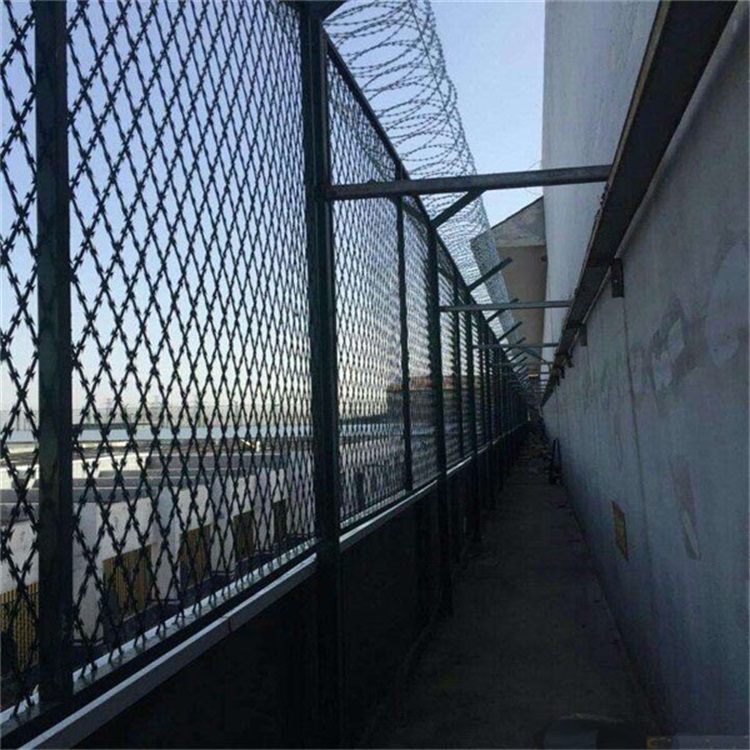 戒毒所隔離網(wǎng)網(wǎng)絲材質(zhì)都是選用Q235碳素鋼,網(wǎng)格大?。?0mm×150mm堅密格型網(wǎng)加三道折彎,加固定框2、網(wǎng)片固定框:20×20×1.5mm國標方鋼管,增加一道垂直中稱戒毒所隔離網(wǎng)廠家網(wǎng)絲直徑:5mm,網(wǎng)片尺寸:2000mm-2500mm(可根據(jù)實際可用空間合理調(diào)整)。戒毒所隔離網(wǎng)立柱規(guī)格:Y型柱直徑60mm×60mm×2.5mm方鋼。柱與網(wǎng)框連接方式:防盜螺絲貫穿式連接。戒毒所隔離網(wǎng)網(wǎng)片頂端安裝刀刺網(wǎng):芯絲直徑2.5mm、刀長21mm,刀寬15mm,刺圈直徑500mm-600mm。