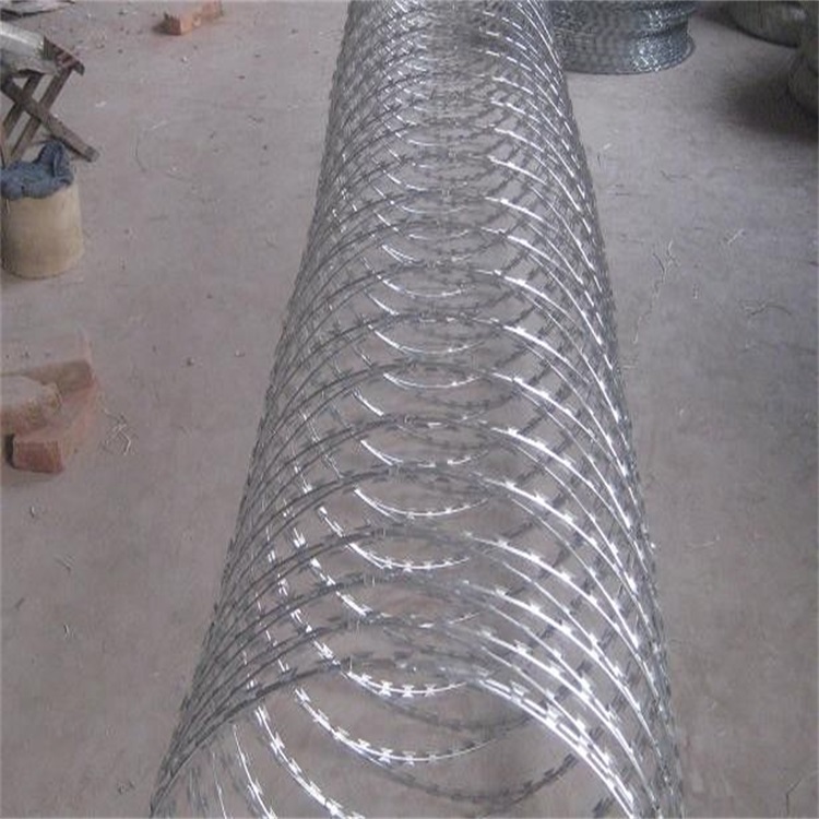 教你怎樣裝置刺絲滾籠︰刺絲滾籠由刀片刺繩制成,相鄰的兩個(gè)環(huán)每隔120度用刺刀銜接卡箍固定。張開(kāi)構(gòu)成蛇網(wǎng)。合攏后,刀片卡口繩直徑為50cm.開(kāi)啟后,每個(gè)十字環(huán)的裝置距離為20cm,直徑不小于45cm.通過(guò)對(duì)偏切鋼板的機(jī)械軋制,在鋼絲上構(gòu)成刀片的綁繩。刺寬22mm,刀片垂直距離15mm,刺縱向距離34mm,芯徑2.5mm.葉片厚度0.5mm的Q195鋼網(wǎng)選用沖孔加工。