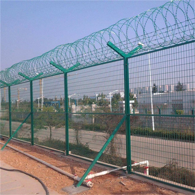 Y型立柱防御網(wǎng)是一種強(qiáng)度高、安全防護(hù)等級(jí)高的產(chǎn)品,由V形支撐立柱、加強(qiáng)焊接片網(wǎng)、安全防盜連接器和熱鍍鋅刀片架組成。。