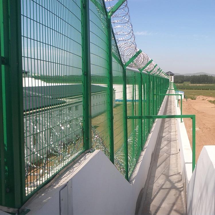 監(jiān)獄警戒圍墻隔離網(wǎng)一般都采用邊框型,這樣的生產(chǎn)形勢也是為了增加網(wǎng)片的牢固度,網(wǎng)孔可以焊接成正方形、長方形,也可以焊接成菱形,也可以直接采用刀片刺繩焊接網(wǎng)或鋼板網(wǎng)材料的網(wǎng)片,然后在網(wǎng)片的基礎(chǔ)上四周焊接邊框,最后進行pvc浸塑或噴塑處理。