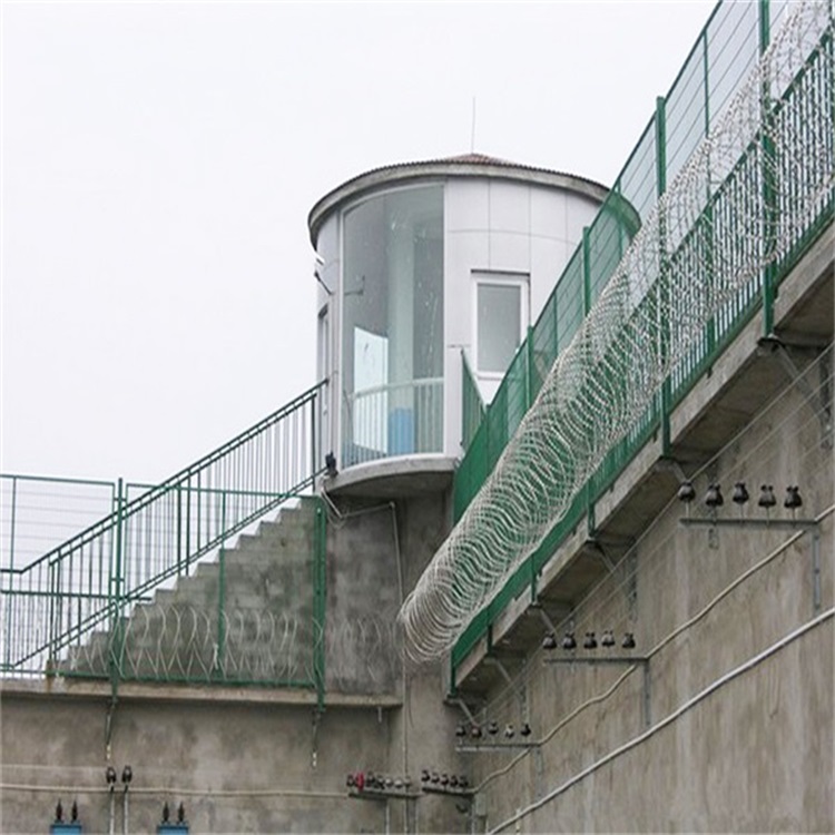 國(guó)內(nèi)監(jiān)獄、看守所等所采用的巡邏道隔離網(wǎng)一般為鐵絲焊接而成,上邊講到的就是鐵絲焊接型,但是也有些設(shè)計(jì)要求是焊接刀刺網(wǎng)樣式的。