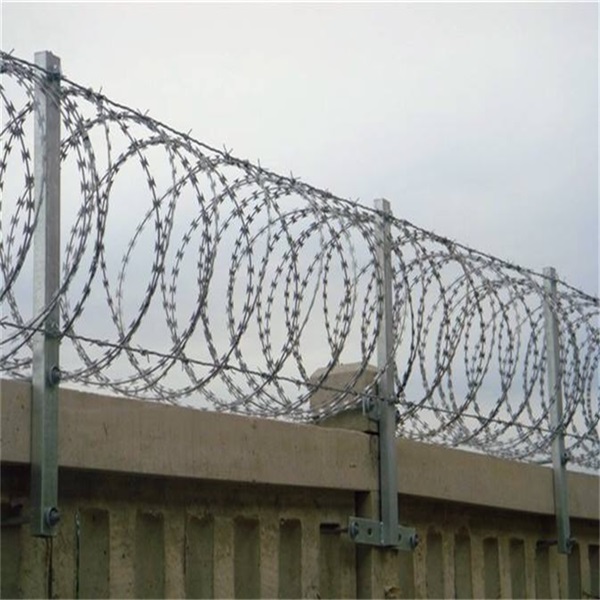 刺絲滾籠鋒利的刀片刺絲由雙根線扣卡子組裝后成蛇腹狀,讓人看到不寒而粟,能夠起到了恐嚇作用,實際上人挨上刀片刺絲就被劃破,實際效果明顯。該產(chǎn)品施工便利快捷。深受軍隊和警察喜好。各國已將刀片刺網(wǎng)廣泛用于飛機場、軍事重地、邊境線、監(jiān)獄、政府機關(guān)、銀行,以及別墅的圍墻、高速公路、鐵路護欄等地。