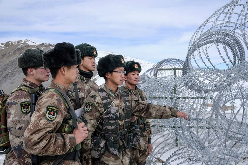邊境鐵絲防護(hù)網(wǎng)采用刺絲滾籠+刺繩護(hù)欄網(wǎng),邊境刺絲滾籠采用刀片刺繩繞圈后相臨兩圈每隔120°用刺絲連接卡固定,張開后形成蛇腹網(wǎng)狀;閉合后刀片刺繩圈徑為50cm,張開后每交叉安裝間距20cm,直徑不小于45cm[交貨時(shí),刺絲滾網(wǎng)(籠)成品應(yīng)為按此條要求用刺絲連接卡固定好的成籠。刀片刺繩由沖切鋼板采用機(jī)械壓軋?jiān)阡摻z上成型,刀刺寬度22mm,兩刃垂直間距15mm,刀刺縱向間距34mm,芯絲直徑為2.5mm,刀片采用厚度0.5mm的Q195鋼板沖切制作,芯絲由HPB300∮6.5mm高線鋼絲冷拔加工。