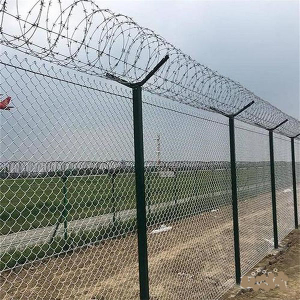 鋁包鋼絲機(jī)場圍界,它是由鋁包鋼絲編織而成的,鋁包鋼絲就是在鋼絲表面鍍上了一層鋁,它比傳統(tǒng)的浸塑表面處理工藝在防腐方面更具有優(yōu)勢,在同等氣候條件下使用年限最少延長一倍,所以未來的機(jī)場將會更多的采用鋁包鋼絲機(jī)場圍界產(chǎn)品。