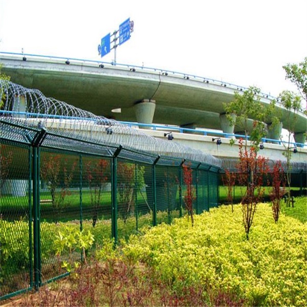 機(jī)場(chǎng)圍界是飛機(jī)場(chǎng)重要的安全防護(hù)鐵絲網(wǎng),它是由Y型立柱、加強(qiáng)型折彎電焊網(wǎng)、安全防盜連接件、鍍鋅刀片刺繩等構(gòu)成的,常常被用于安全級(jí)別要求比較高的場(chǎng)所,如飛機(jī)場(chǎng)周邊圍界、監(jiān)獄看守所圍墻、私人領(lǐng)地、軍事邊防等領(lǐng)域。它不僅外形美觀,而且安全性高,由于防止人員攀爬翻越過(guò)邊界,因?yàn)闄C(jī)場(chǎng)圍界的上面掛著一圈又一圈的帶著刀片的刺鐵絲,防攀爬效果特別好,被稱(chēng)為高防護(hù)網(wǎng)產(chǎn)品。