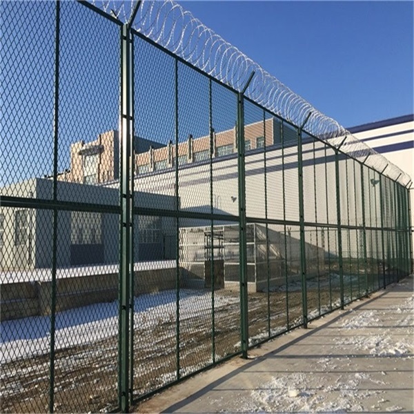 2、浸塑制作流程,首先將工件進(jìn)行去除氧化層→水洗→將工件加熱至380攝氏度高溫→將加熱好的工件放入固體粉末槽,粉末經(jīng)過(guò)高溫粘附在監(jiān)獄隔離網(wǎng)的表面→最后進(jìn)入烘烤固化室→成品。優(yōu)點(diǎn):色彩鮮艷,不易老化,顏色多種選擇,防腐壽命10年以上,缺點(diǎn):時(shí)間久了以后,破損地方容易生銹,維護(hù)成本較高。