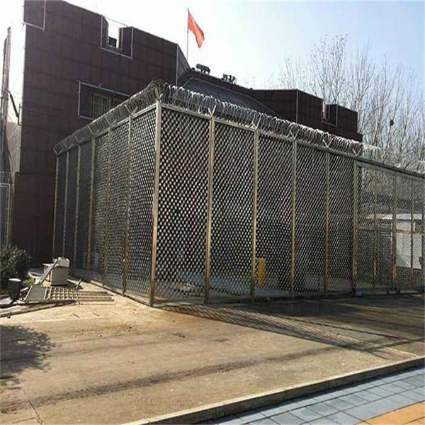 監(jiān)獄AB門通道鋼網(wǎng)墻也可以稱為AB門鋼網(wǎng)墻,監(jiān)獄收押通道鋼網(wǎng)墻,監(jiān)獄通道鋼網(wǎng)墻多用梅花刺網(wǎng),單層梅花刺片網(wǎng),直徑不小于7.5cm,刺片厚1.5mm,采用Q235低碳鋼板沖壓成型。網(wǎng)片為菱形網(wǎng)孔,網(wǎng)格尺寸:120mm*110mm(高*寬),網(wǎng)絲直徑8mm,采用S195線材高壓焊接,每一個(gè)焊點(diǎn)附焊梅花刺一個(gè)。立柱采用Q235鋼管,規(guī)格:直徑80*80方管,壁厚3 mm;高4.5米,間距3米。邊框?yàn)?/span>50*50*2mm角鋼和40*3mm扁鐵,將網(wǎng)絲、角鋼、扁鐵焊為一體;邊框與立柱采用螺栓固定邊耳式連接。隔離網(wǎng)、立柱要求整體熱鍍鋅,上鋅量不低于300克,可做霧化試驗(yàn)(附檢測(cè)報(bào)告),監(jiān)獄AB門通道鋼網(wǎng)墻整體鍍鋅在內(nèi)陸自然環(huán)境下,鋅層要求使用不低于10年。