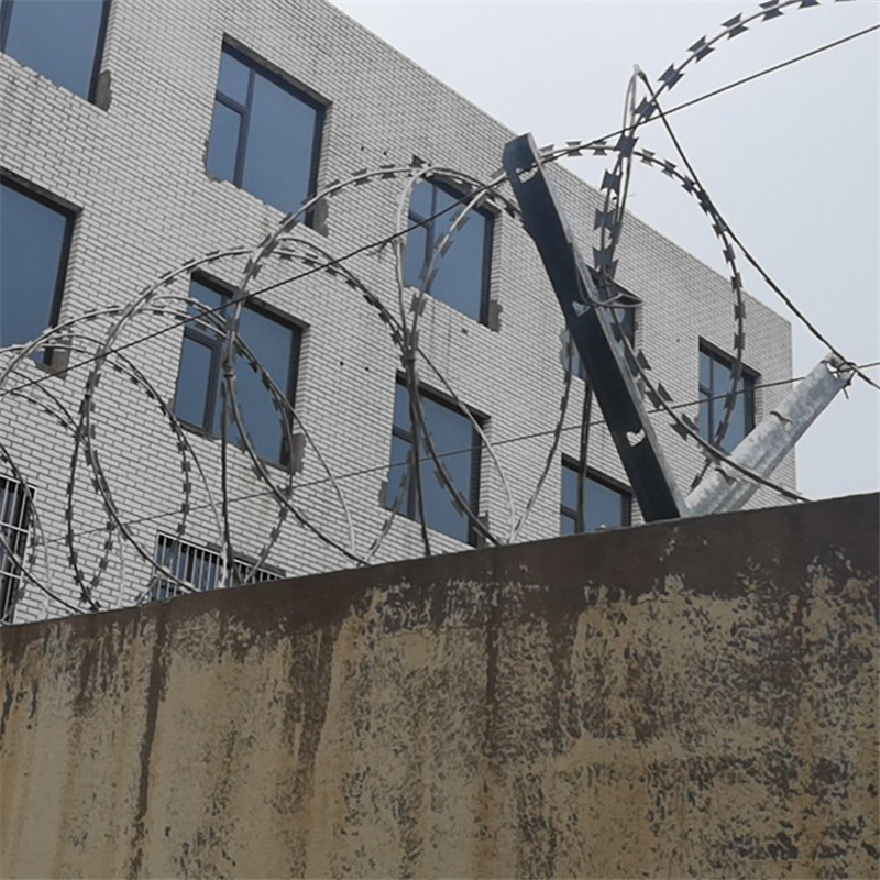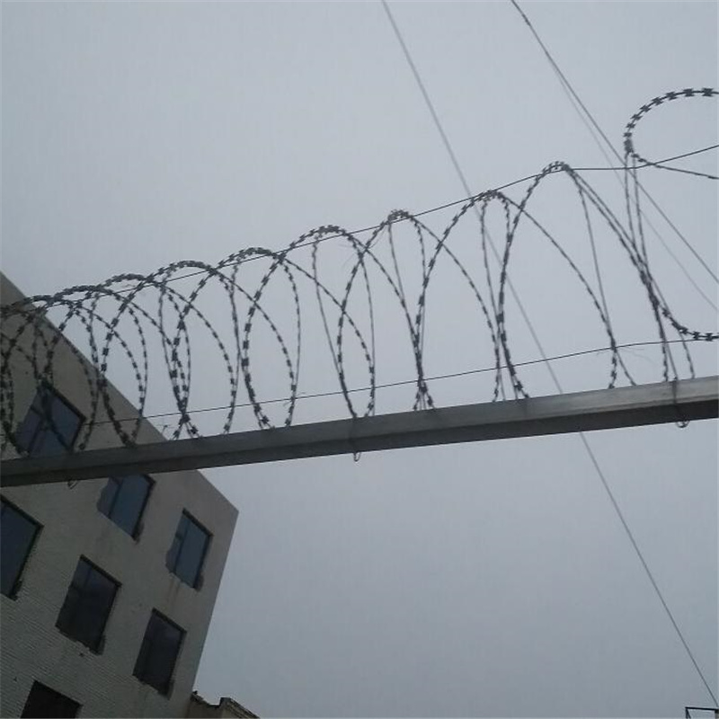 刀片刺網(wǎng)又名:刀片刺繩、刀片刺絲、機(jī)場(chǎng)護(hù)欄網(wǎng)、監(jiān)獄圍墻刺網(wǎng)、刺絲滾籠。