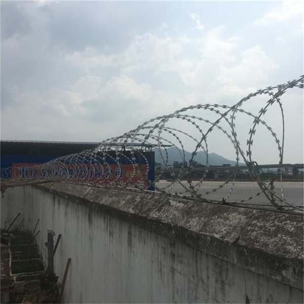 圍墻防護(hù)刀刺滾網(wǎng)常用的是BTO-22刺絲滾籠,每三米一組熱鍍鋅支架,表面采用熱鍍鋅處理,既起到了防攀爬的作用,還具有很好的防腐蝕效果。刀片刺網(wǎng)的材質(zhì)也是多種多樣的。有不銹鋼刀片刺網(wǎng)、鍍鋅刀片刺網(wǎng),還有電泳刀片刺網(wǎng)。