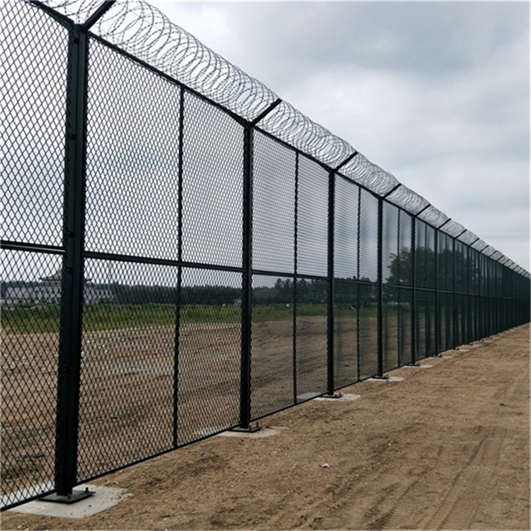 三:鋼絲焊接的網(wǎng)片采用低碳鋼絲焊接而成,表面采用pvc浸塑處理,與刀刺網(wǎng)連接。