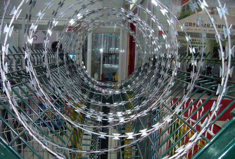 首先,常見的就是螺旋滾刀網(wǎng),也就是圈狀的金屬防爬刺網(wǎng)。這種刺網(wǎng)從材質(zhì)來說又分為熱鍍鋅刺網(wǎng)和不銹鋼刺網(wǎng)。搭配支架只用更穩(wěn)固。