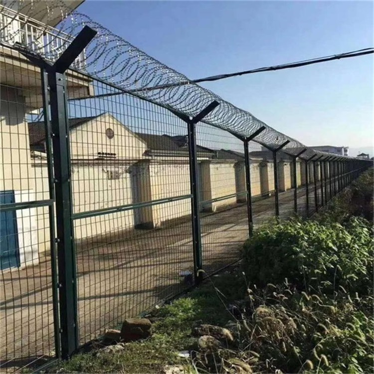 監(jiān)獄隔離網(wǎng)設(shè)計(jì)要求整體固定連貫一致,標(biāo)準(zhǔn)生產(chǎn)質(zhì)量,框網(wǎng)方正,對角線誤差不大于2cm。監(jiān)獄隔離網(wǎng)網(wǎng)面安裝離地距離5-8cm,框網(wǎng)與立柱采用螺栓固定邊耳式連接網(wǎng)頁每邊與立柱連接點(diǎn)不少于六處。立柱采用水泥澆灌預(yù)埋式,規(guī)格為600*600*600mm (長*寬*深),底座四角預(yù)制四個(gè)直徑25mm熱鍍鋅螺栓(每個(gè)螺栓中心為距基礎(chǔ)兩邊150mm的交叉點(diǎn)),從頂端往下絲長不小于150mm (與地籠焊為一體),螺栓高于底座平面50mm (底座平面應(yīng)與所在位置最終地面高度在同一水平高度),螺栓間距為300mm*300mm,與立柱法蘭盤螺孔相適應(yīng)。立柱保持豎直、不歪斜。立柱做調(diào)直處理,每20米校正,每100米偏差角度不大于5°,安裝整體無歪斜,隔離網(wǎng)整體呈直線(除地形需要做出適宜角度外)。
