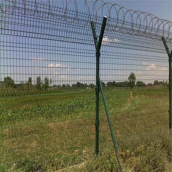 防爬Y型機場圍界網(wǎng)頂部裝有刀片刺絲和刀片刺繩,安全保護功能將得到很好的加強。其產(chǎn)品外形美觀,顏色多樣,不僅起到圍欄的作用,還起到美化的作用。Y型機場圍界網(wǎng)可以電鍍、熱鍍、噴涂、浸塑等防腐形式,具有良好的抗老化、防曬、耐候等特點。艾瑞根據(jù)用戶需求生產(chǎn)各種規(guī)格和尺寸的Y型機場圍界網(wǎng)產(chǎn)品!