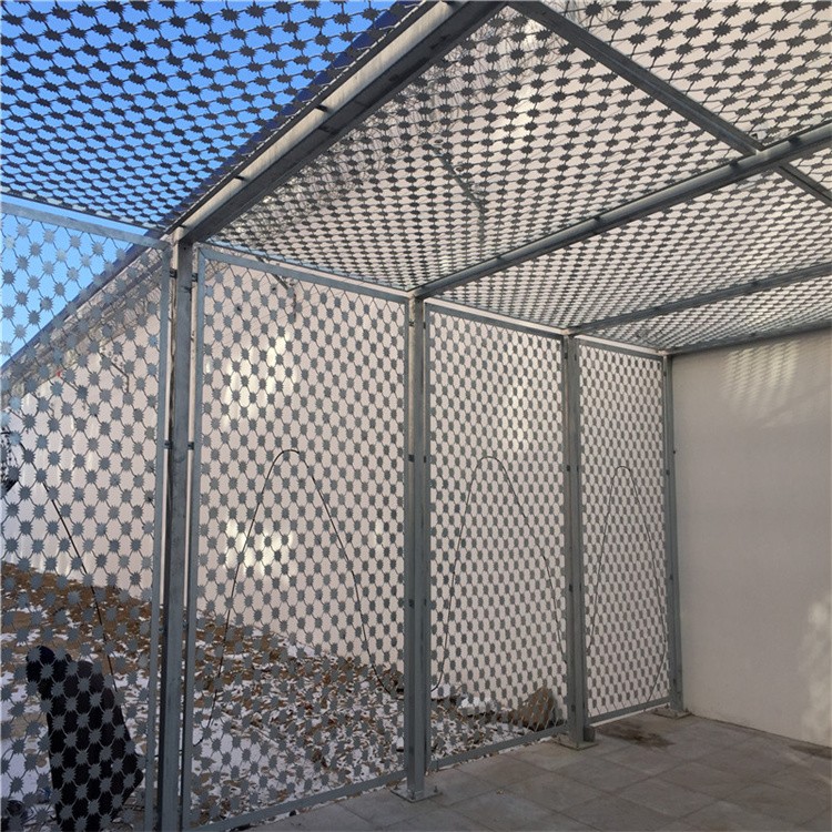 監(jiān)獄太陽花護(hù)欄網(wǎng),由于網(wǎng)片刺片造型類型于太陽,得名太陽花型護(hù)欄網(wǎng),采用大直徑高強(qiáng)度低碳鋼絲制作,具有防攀爬、防沖擊、防剪切特性和良好的震懾作用,有多種架設(shè)方式。