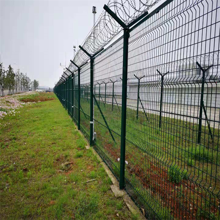 機(jī)場(chǎng)圍界護(hù)欄是飛機(jī)場(chǎng)重要的安全防護(hù)鐵絲網(wǎng),它是由Y型立柱、加強(qiáng)型折彎電焊網(wǎng)、安全防盜連接件、鍍鋅刀片刺繩等構(gòu)成的,常常被用于安全級(jí)別要求比較高的場(chǎng)所,如飛機(jī)場(chǎng)周邊圍界、監(jiān)獄看守所圍墻、私人領(lǐng)地、軍事邊防等領(lǐng)域。它不僅外形美觀,而且安全性高,由于防止人員攀爬翻越過(guò)邊界,所以機(jī)場(chǎng)圍界的上面掛著螺旋狀的刀片刺鐵絲,很容易劃傷人的皮膚,防護(hù)型很高。