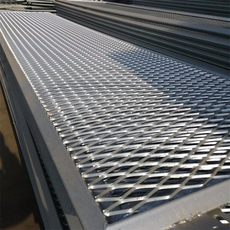 鋼板網(wǎng)制作:把成品板經(jīng)過機(jī)器沖剪拉伸成帶有菱形孔狀的鋼絲網(wǎng),然后焊接在焊接好的方管上面。